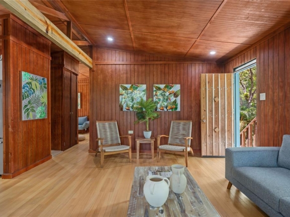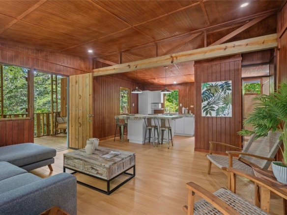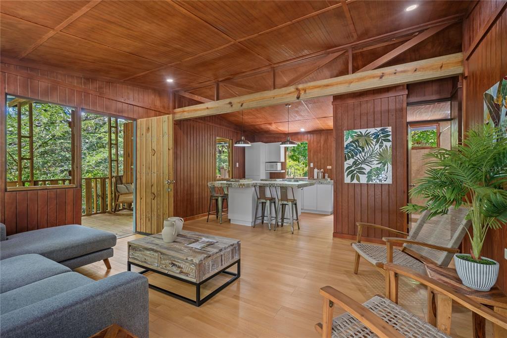 The elevated home includes two bedrooms and two bathrooms. The master suite boasts floor-to-ceiling glass walls, framing breathtaking views of the surrounding landscape. The charming kitchen is fully equipped with modern essentials, while the cozy living area invites relaxation. Step outside to the all-around balcony, where you can unwind, enjoy the fresh air, and immerse yourself in the serene natural surroundings.