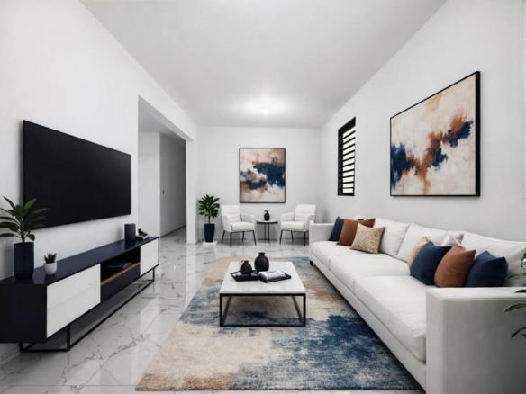 Experience contemporary living in this completely renovated residence. This move-in-ready home features a sleek aesthetic and updated infrastructure, including electrical systems and plumbing. The interior boasts expansive, oversized designer floor tiles throughout, complemented by new modern windows and stylish aluminum doors.