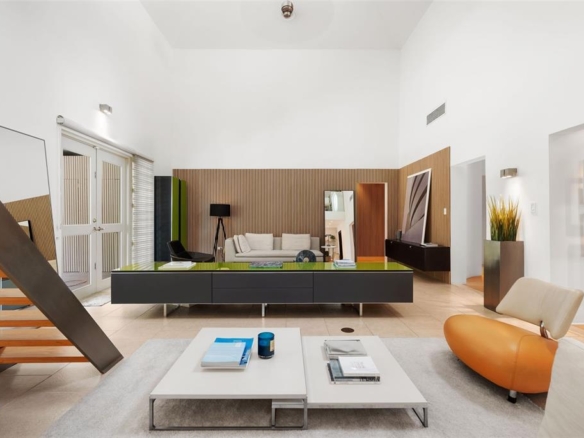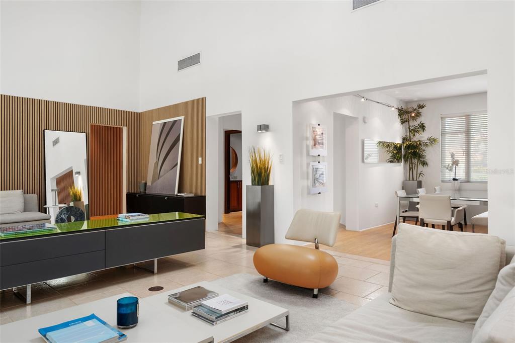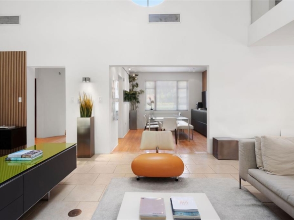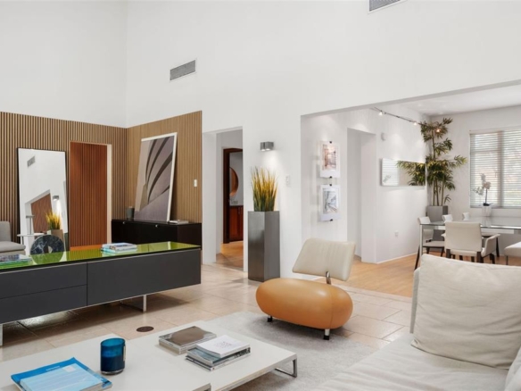 There’s a home in Palmas del Mar where design and acoustics come together in perfect harmony. Welcome to this striking modern residence in Costa Verde — a property that redefines what it means to live beautifully, inside and out. Set on an expansive 1,246 sq. meter lot, this single-level home spans approximately 3,600 of carefully considered living space. Natural light floods the interiors, while soaring ceilings and thoughtful architecture create a sense of volume and flow. At the center of the home, the main living area rises dramatically to 26 feet, crowned by a floating mezzanine with sleek glass railings — a bold architectural statement that hovers just above the kitchen, creating a unique focal point.
