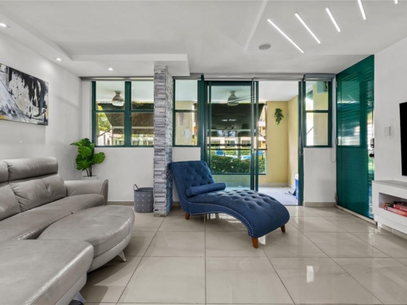 Exceptional garden-level 3-bedroom, 2-bathroom residence fully remodeled from top to bottom, offering premium finishes throughout, including illuminated facias, brand-new flooring, a modern renovated kitchen, and completely updated bathrooms with high-quality materials.
