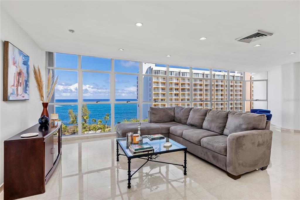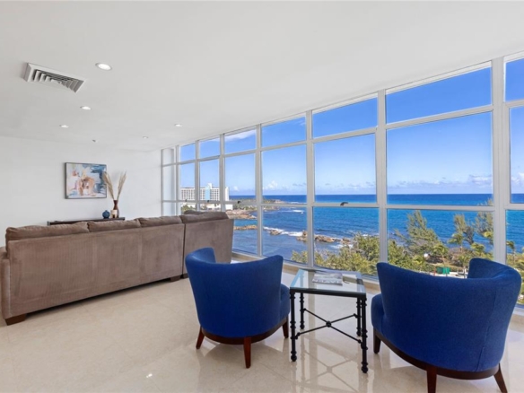 Experience urban living in this iconic high-rise residence, perfectly situated in the vibrant heart of the Condado District. This beautifully furnished apartment boasts 2,100 sq. ft. of living space on an elevated floor, offering breathtaking ocean views and a location within one of Condado’s most sought-after neighborhoods. Ideally positioned on the renowned Ashford strip, you’ll find yourself walking to acclaimed restaurants, upscale boutiques, private schools, and a hospital. The unit features three spacious bedrooms and two and a half luxurious bathrooms, each enhanced by floor-to-ceiling windows that flood every room with natural light and stunning vistas. Enjoy comfort and efficiency with central energy-efficient air conditioning and an oversized water heater. The contemporary open-concept kitchen is equipped with a generous pantry and premium stainless-steel appliances, complemented by elegant tile flooring throughout. The bathrooms have been custom-renovated in a sleek European style, while the expansive master suite includes a walk-in closet for ample storage. Full power generator!! This residence seamlessly blends modern elegance with comfort, making it an exceptional opportunity to enjoy cosmopolitan living at its finest.
