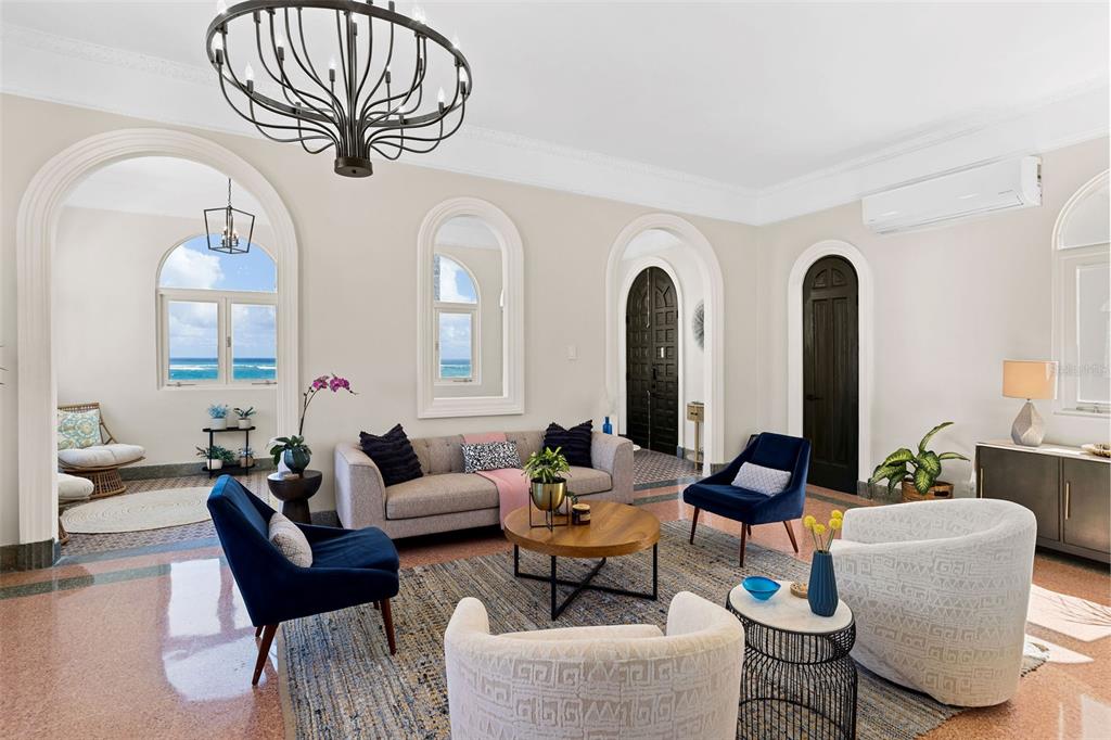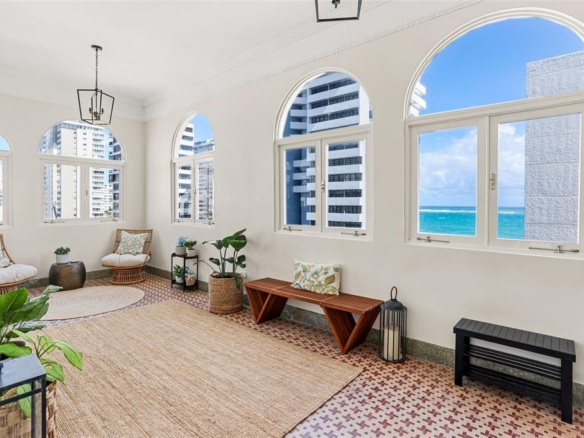 Nestled within Cond. Borinquen Park, a classical building in Condado, Puerto Rico, this 5,200 sq. ft. one-of-a-kind penthouse offers a rare blend of old-world charm and modern luxury. Enjoy 360-degree views of the city and ocean through expansive windows that flood the living spaces with natural light and create a serene, captivating ambiance. The 2,000 sq. ft. private rooftop terrace is perfect for entertaining or relaxing with the backdrop of the sea.