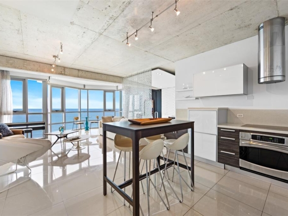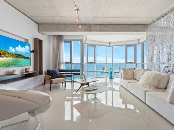 Beautifully designed studio apartment located on a high floor at Atlantis Condominium, offering stunning ocean views and abundant natural light through floor-to-ceiling glass. The apartment is offered fully furnished and features a one bedroom, one full bathroom, an open-concept living space, and one assigned parking space. The layout is spacious, modern, and thoughtfully styled, creating a refined yet comfortable coastal living environment.