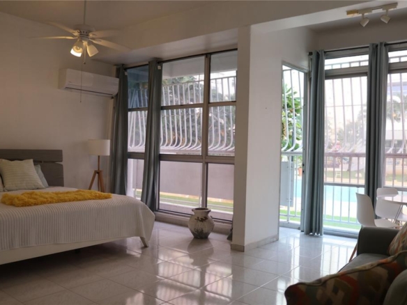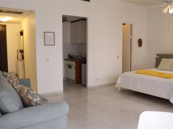 Well-located studio apartment with one full bathroom at Condominio Los Pinos, offering comfort, convenience, and excellent community amenities. The unit includes one covered parking space and is situated in a gated community with 24-hour security.