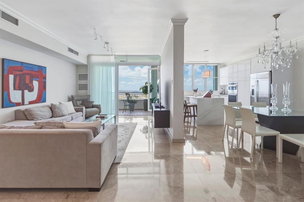 Spectacular, fully remodeled Sub-PH with gorgeous panoramic views of San Juan. This unit is a 3-bedroom, 2.5-bathroom unit with 2200 square feet. Beautiful marble floors throughout, modern open kitchen with stainless steel appliances and quartz countertops. The unit also offers the convenience of having 3 assigned parking spaces. The building is centrally located near main highways and expressways. It offers 24/7 security, FULL power generator, gym, gazebo, a nice pool area to relax and unwind and a beautiful lobby. Do not miss the opportunity of enjoying a great lifestyle at this gorgeous Sub-PH in Puerto Paseos.