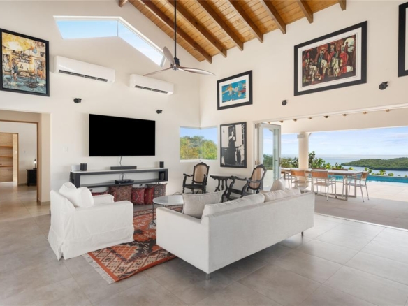 Elevated above Las Pelas Bay, this residence designed by architect Pedro Rodríguez Flores offers a rare balance of openness and privacy. The living room opens directly onto an expansive terrace that forms the heart of the home, creating a seamless flow between indoor living and open air spaces ideal for entertaining, relaxation, and quiet moments.