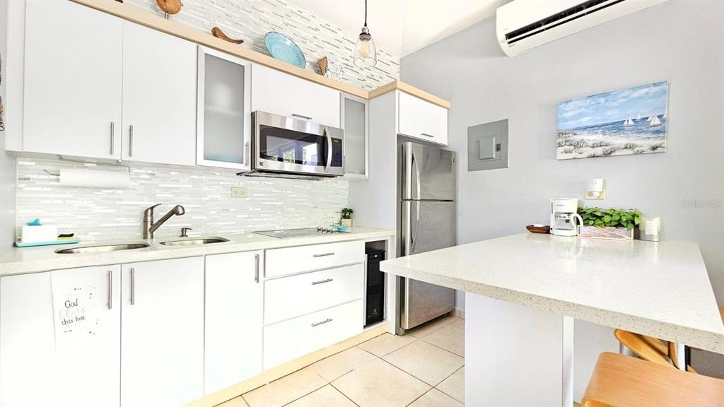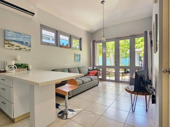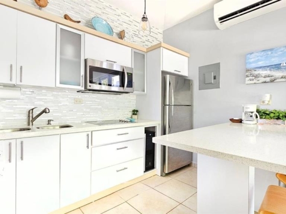 This cozy apartment for rent is located in Boquerón, Cabo Rojo, right in front of the Nautical Club. The property features two bedrooms and one full bathroom, offering a comfortable layout that includes a queen bed, a bunk bed, and a sofa bed in the living room. It comes equipped with inverter air conditioning in both bedrooms and the living room, a washer and dryer combo, and a fully equipped kitchen with a refrigerator, stove, microwave, coffee maker, pots, and dishes, ready for immediate use.