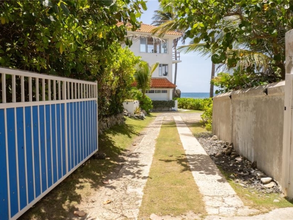 Outdoors, the property is both private and commanding, with direct access to the tranquil sands of La Chata Beach. Native palms and low-maintenance tropical landscaping frame a walking path that encircles the residence, providing effortless access to multiple vantage points. A gated entrance opens to a private parking area accommodating two vehicles, while a discreetly positioned utility and pump room is tucked beneath the pool deck.