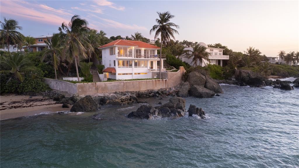 Las Piedras is an exceptional oceanfront estate offering sweeping panoramic views and a profound connection to its natural surroundings. Perched above the crystalline waters of Vieques’ coveted north shore, the residence commands a dramatic 180-degree vista of the Caribbean Sea—from the coral-fringed shoreline below to the distant silhouettes of Culebra, St. Thomas, and St. John along the horizon. To the west, the mountains of mainland Puerto Rico rise in the distance, completing a truly immersive island panorama.
