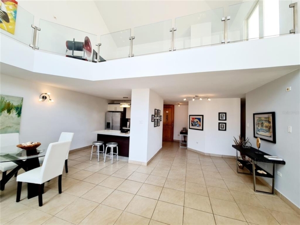 Modern, spacious penthouse in the exclusive Puerta Del Mar Complex where you can enjoy various pools, including the famous infinity pool that overlooks Crashboat Beach, activity center, playground, BBQ area, also featured, 24 hr security and control access. This 2 bedroom, 2 bathroom home features high ceilings that provide exquisite natural light, a private terrace, mezzanine, and balcony. The spacious open space areas and rooms come fully furnished and equipped. For your convenience, there is assigned tandem (2 spot) parking right in front of the building. Beautiful, convenient, elegant and a centric area!