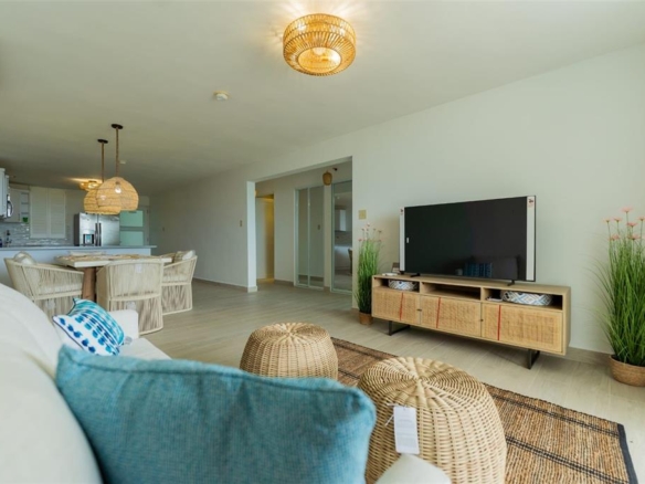 This amazing ocean front apartment, is totally remodel and fully equipped. With two bedrooms, two bathrooms, living room and kitchen. The ocean view from the balcony and master bedroom is breathtaking. This condo has a double parking spot, power generator, water reserve, pool and is fully gated. The location is amazing, just in front of the balneario beach and walking distance to the center of town. Enjoy a beautiful sunset in the apartment of your dreams.