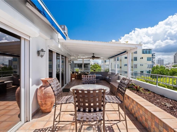 Two-story penthouse PH 601 at Wilson Caribe offering approximately 3,030 square feet of interior living space plus over 600 square feet of private outdoor terraces. The layout includes 3 bedrooms and 3.5 bathrooms with a clear separation between social and private living areas. The residence offers direct access to Baldorioty de Castro, providing convenient connectivity throughout Condado and the metropolitan area. The unit includes two assigned covered parking spaces and access to building amenities such as a pool and controlled elevator access. The combined interior and exterior square footage reflects the overall scale of the property within the Condado market.