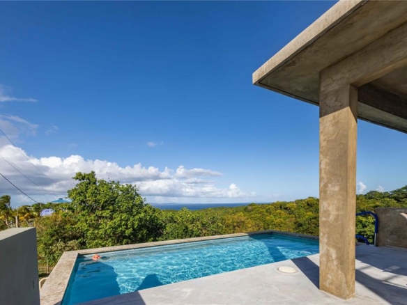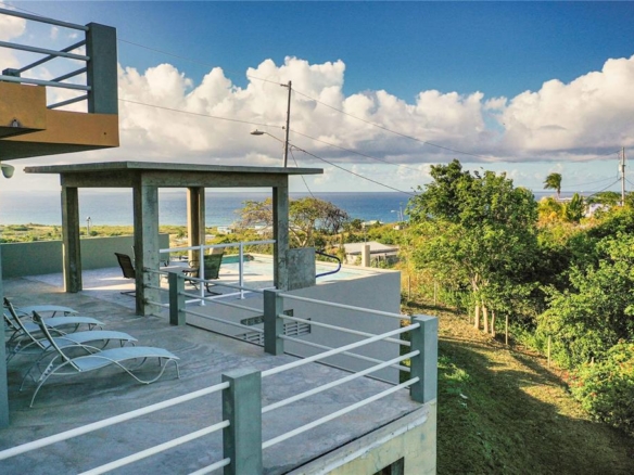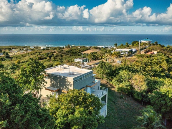 Casa Seahorse is a contemporary hillside residence located in the Villa Borinquen neighborhood of Vieques, Puerto Rico, overlooking the Caribbean Sea. The property offers expansive views across lush landscapes toward Culebra and, from select vantage points, the Puerto Rico mainland.