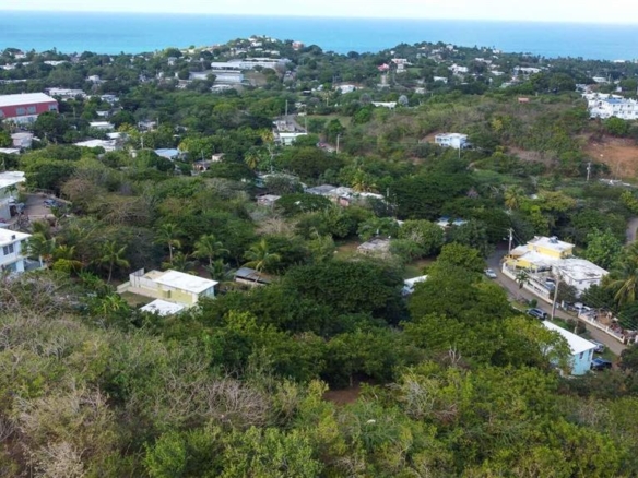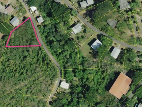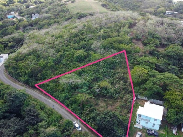 Positioned on a gentle slope, the lot offers elevated topography with potential for second-story ocean views, capturing glimpses of the Caribbean Sea, distant rooftops, and lush island vegetation. With paved public road access, utilities including water and electricity are available for connection nearby, making it a practical and flexible option for new construction.
