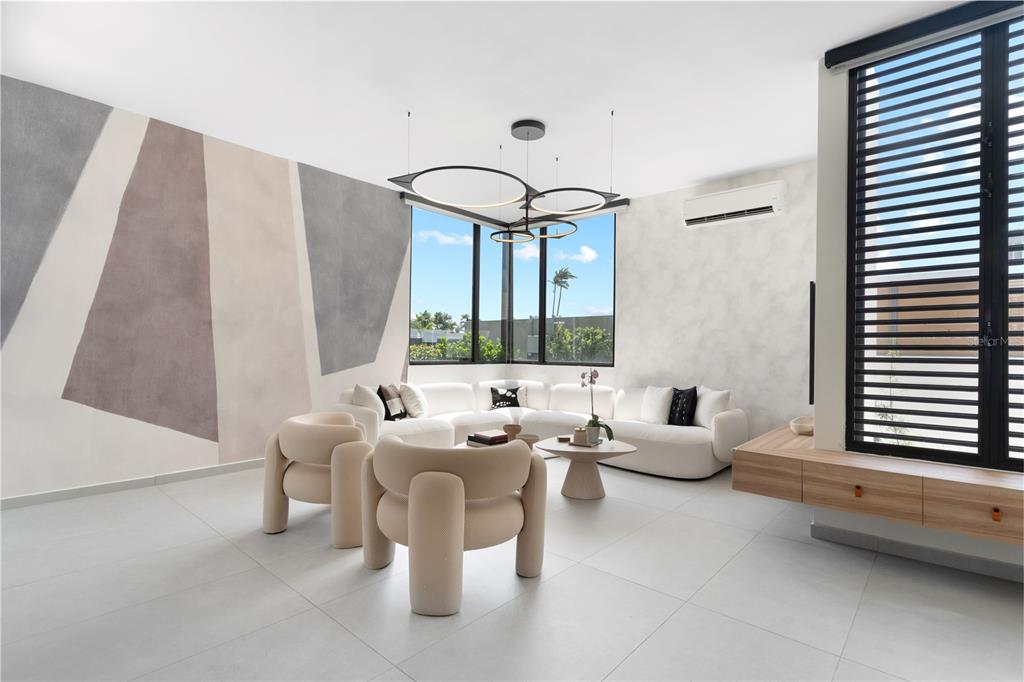 The primary suite offers two walk in closets, providing ample storage and comfort. Additional highlights include approximately 4,550 square feet of total construction on a 690 square meter lot, a two car garage with EV charger, solar panels with battery backup, a generator, water cistern, and electronic hurricane shutters for added convenience and peace of mind. Located within a gated community in Guaynabo near top schools, restaurants, shopping, and everyday conveniences.