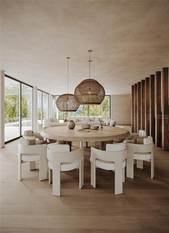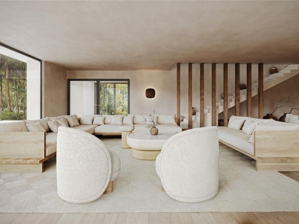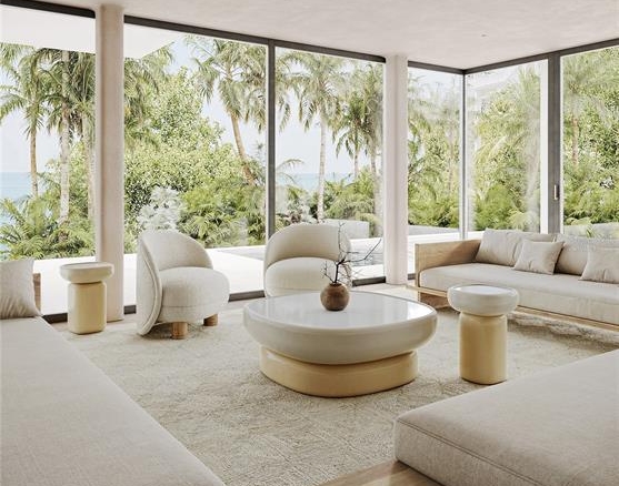 Featuring 5,723 sq. ft. of interior space, 4,522 sq. ft. exterior patios and terraces, the home boasts 10-ft ceilings, floor-to-ceiling hurricane-rated doors and windows, and cross-ventilation for natural ocean breezes. Highlights include a custom Eggersmann kitchen (Germany) with Wolf + Sub-Zero, interiors by Yana Prydalna, wine & cigar lounge, enclosed den, designer fixtures, smart lighting, and custom closets.