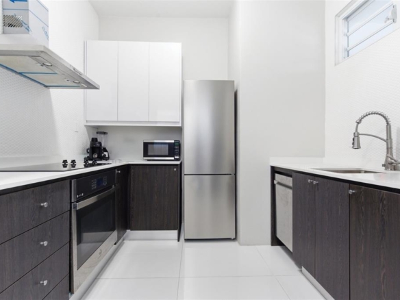 Spanning approximately 1,102 square feet, the unit features a functional layout with a full kitchen equipped with cooktop and oven. The building is equipped with an on-site generator and water cistern, providing added convenience and peace of mind. Reserved parking is included.