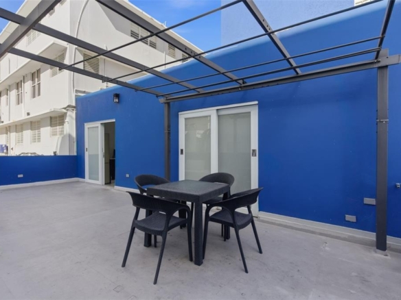 Well-positioned in the heart of Condado, this 1-bedroom, 1-bath suite is set within an intimate condominium and offers an ideal balance of comfort and exceptional walkability. Just steps from top schools, restaurants, cafés, boutique shops, grocery stores, and the beach, the location delivers a true urban coastal lifestyle, directly across from Parque del Indio and a beach entrance. Spanning approximately 718 square feet, the unit features a practical, well-distributed layout with a full kitchen as well as a large terrace that adds inviting outdoor space. The building is equipped with an on-site generator and water cistern, providing added convenience and peace of mind. Please note, this unit does not include parking; however, street parking is available nearby.