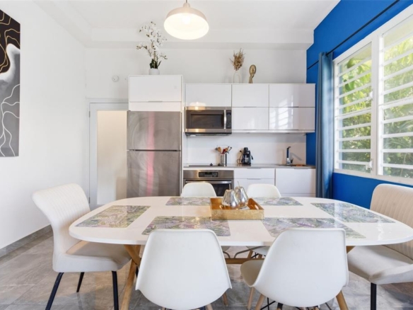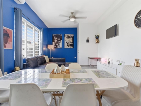 Elevated penthouse living in the heart of Condado. This 1-bedroom, 1-bath residence is located in an intimate condominium and offers the perfect blend of comfort and unmatched walkability. Just steps from top schools, restaurants, cafés, boutique shops, grocery stores, and the beach, the location delivers a true urban coastal lifestyle, ideally situated directly across the street from Parque del Indio and a beach entrance. Spanning approximately 750 square feet, the unit features a functional layout with a full kitchen and comes fully furnished and equipped, ready for immediate move-in. The building is equipped with an on-site generator and water cistern, providing added convenience and peace of mind. Please note, this unit does not include parking; however, street parking is available nearby.