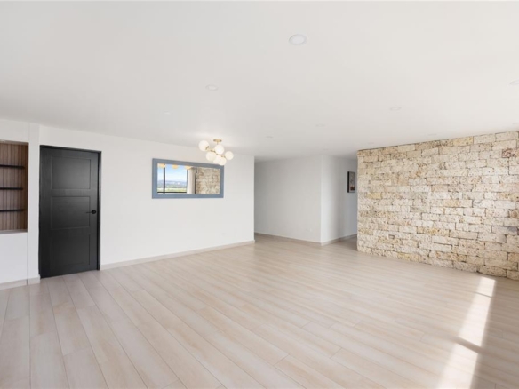 The residence features inviting living and dining spaces that flow seamlessly together, enhanced by soft, warm tones and expansive windows showcasing views of the ocean and Punta Las Marías. The apartment is offered unfurnished, providing a blank canvas to create your ideal home. The kitchen is thoughtfully equipped with KitchenAid appliances, including a refrigerator, microwave, and oven, along with a GE in-unit washer for added convenience.
