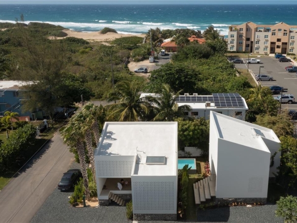 Casa Bajura is a 2,700 sq. ft. architectural compound composed of two independent yet identical villas, each with three bedrooms and en-suite bathrooms, located in Isabela, Puerto Rico, on a quiet local dead-end street with direct beach access. The project is conceived as a space of creative hospitality, where architecture, landscape, and daily life exist in constant dialogue. For those who appreciate architecture and design as a way of life, Casa Bajura is a truly special property. It is a singular architectural piece, designed to be lived in and shared, transcending the definition of a conventional residence.