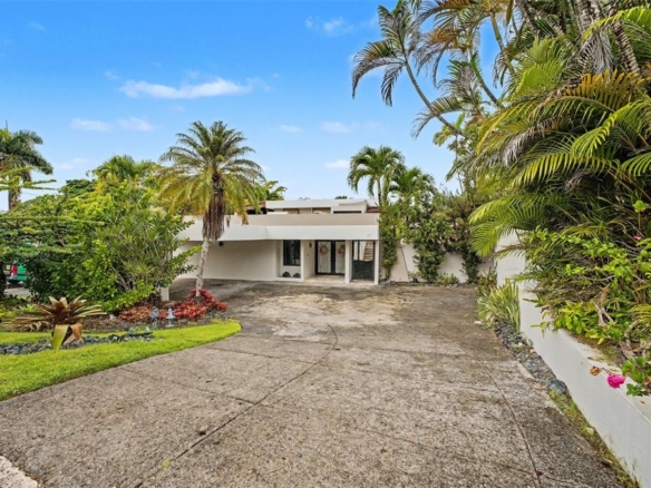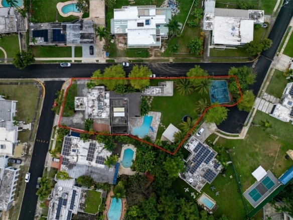 Rarely does a property of this caliber and versatility become available in the heart of San Juan. This unique offering consists of two separate, adjacent lots being sold together as one expansive estate, providing a level of privacy and recreational space that is virtually unmatched in the area. The primary residence, located at B1 Calle Santa Isabel, is a one-story tropical-style home encompassing approximately 2,845 square feet of gross living area. Designed for both elegance and durability, the residence features high-quality reinforced concrete construction and stunning marble flooring throughout its 12 total rooms. The floor plan is thoughtfully laid out with 3 spacious bedrooms and 3 full bathrooms. For year-round comfort, the home is equipped with a split-unit air conditioning system. The outdoor living space of the main house is a true sanctuary, featuring an extensive terrace area with both concrete and wood decking, a swimming pool complete with a slide, and a convenient two-car carport.