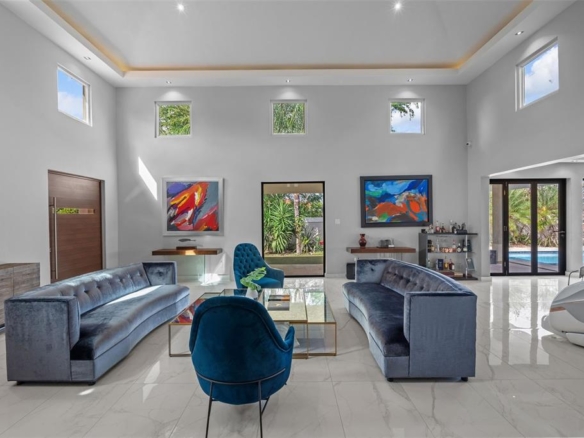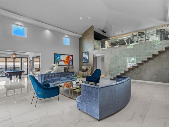 Located on Camino La Pomarrosa in Sabanera, Dorado, this enlarged Casona Carbia model sits on a corner lot within a quiet cul-de-sac, offering privacy and a thoughtfully designed living experience. The residence features 5 bedrooms and an open layout that supports both comfortable daily living and entertaining.