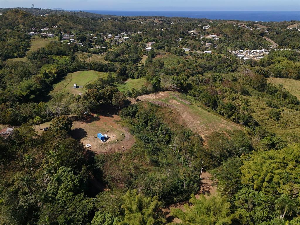 Here is an opportunity to build your dream home in the secluded countryside of Aguada and still have ocean views from this 5.3 cuerdas (5.1463 Acres) farmland. This expansive lot has both rolling hills and plenty of flat areas to build on. The meticulously landscaped property has 3 out of 4 sides fully fenced and the 4th border is a river at the bottom of the property. The highest hill on the farm already has a brand new, never used septic tank plus a container for storage with the beginning of a bathroom just off the back of it. From the top of this exquisite farmland you can gaze onto the Caribbean sea and the beautiful surrounding lush hillsides. Then as you head toward the river at the bottom, you'll hear the bamboo sway in the coastal breeze, carrying the mixed scents of earth and sea—rich soil, wild grass, and a faint tang of salt. Truly a one of kind property that is zoned R-G, which allows for flexible land use; including single-family homes and agricultural ventures. Being sold as is, qualified buyers only please. Coordinates: 18.3604, -67.2116