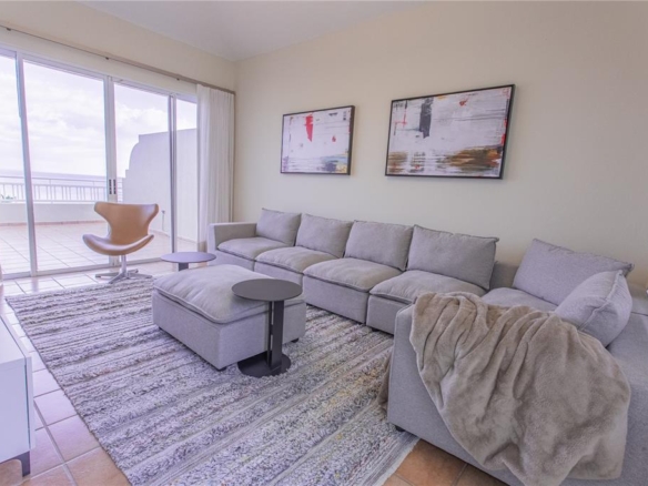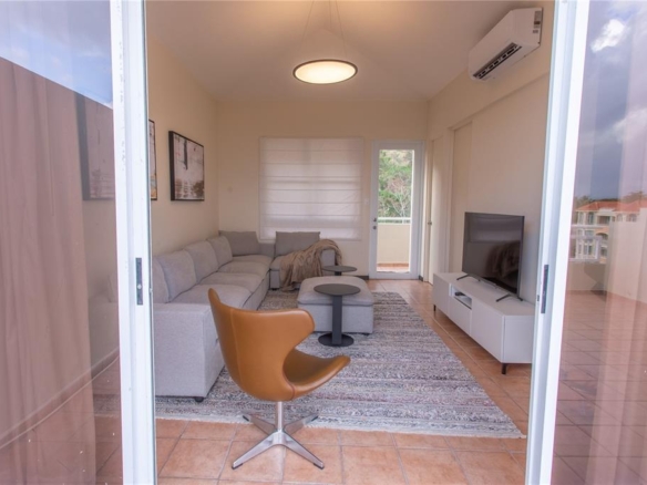 As you step inside, you'll be greeted by a spacious and tastefully designed open-concept living area. The stylishly furnished living room provides a comfortable and inviting space to relax and entertain guests. The highlight of this remarkable apartment is undoubtedly the expansive terrace, offering an unparalleled view of the ocean. It's the perfect setting to unwind, host gatherings, or simply indulge in the tranquility of your surroundings.