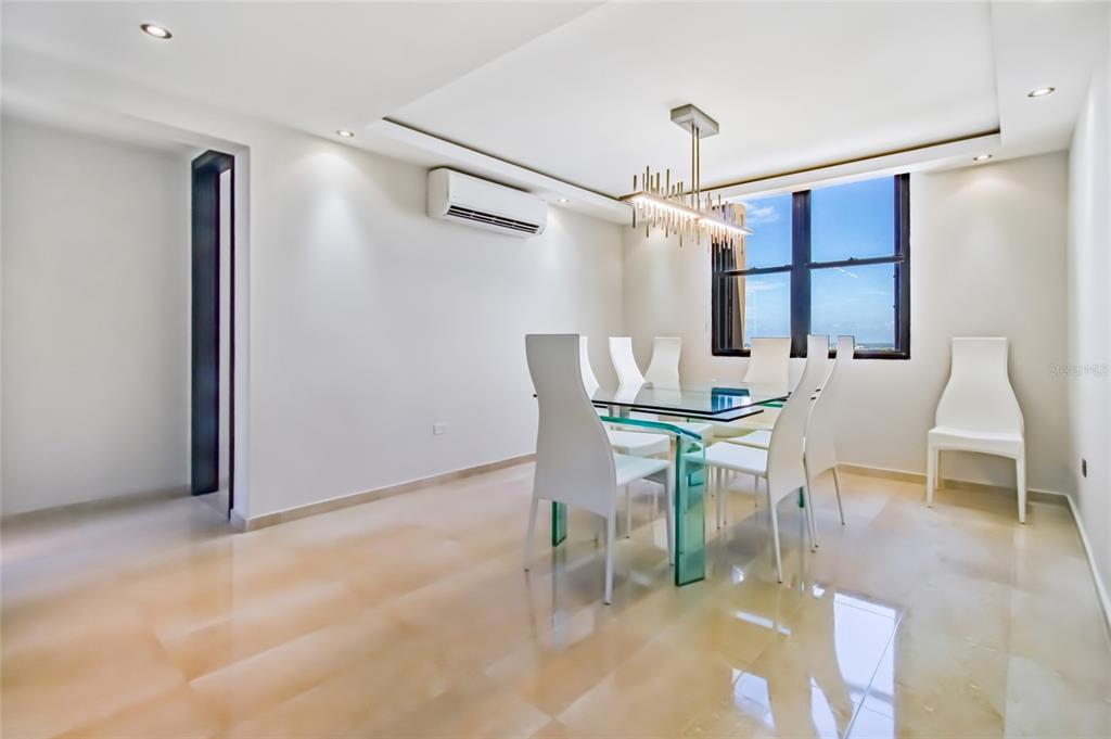 Located between Floors 26 & 27 of Cond. Plaza La Inmaculada I, this 2-story corner Penthouse gem possesses the best views of San Juan, with a 360-degree skyline view of San Juan Bay, El Yunque Mountains, the city, and more. The Penthouse consists of approximately 2,600 sq. ft. with 2 floors featuring custom-built finishings and design. Level 1 includes the kitchen, dining, and living rooms, 2 bathrooms, and 2 bedrooms. Level 2 consists of the master bedroom with a custom-designed bathroom and 2 walk-in closets. Additionally, this 2nd level includes an ample terrace area with unobstructed views of the entire metro area, with an option to create a mini-bar, perfect for hosting or relaxing at sunset, and a half-bathroom. The Penthouse includes 2 covered parking spaces and a 24/7 security gate community entrance.