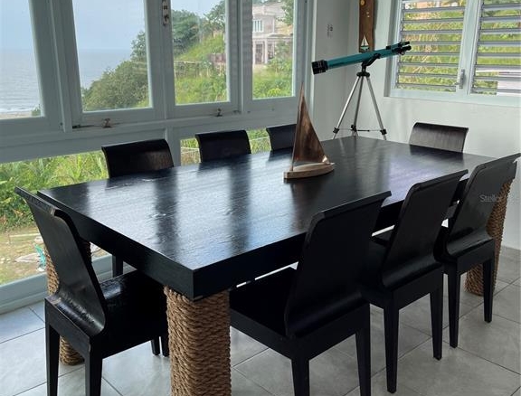 Spacious balcony with ocean view. Laundry area included. Comes with beds, furniture, TV, PVC cabinets, stove, refrigerator, microwave, sofa, and a dining table with six chairs. Patio furniture is also included.