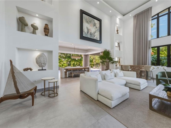 Set within the prestigious enclave of Dorado Beach East, 29 Dorado Beach East is a thoughtfully designed tropical residence distinguished by its scale, privacy, and seamless connection to nature. The property is conveniently accessed through the more secluded north entrance of Dorado Beach East, offering proximity to the beach, Encanto Beach Club, and the Ritz-Carlton Reserve. Arrival is marked by a tranquil, multi-level koi pond at the main entrance, creating a calm and welcoming introduction to the home. Inside, a grand formal living room unfolds with ceilings rising over 22 feet, filling the space with natural light and a sense of openness. The main level is designed for effortless living and entertaining, with a fluid layout that connects the formal dining room to a more intimate family room, highlighted by a bay window overlooking lush greenery. The expansive kitchen serves as the heart of the home, featuring a generous center island and a separate breakfast area with its own wet bar, equally suited for relaxed mornings or more formal gatherings. Two well-appointed bedrooms with ensuite bathrooms complete this level. The second floor is conceived as a private retreat, centered around a charming courtyard filled with potted plants that offers a quiet focal point upon arrival. The primary suite is notably spacious, with 19-foot ceilings and bay windows that invite abundant natural light. Three additional bedrooms, each with its own ensuite bathroom, provide privacy and comfort for guests. What truly defines the home is its relationship with the outdoors. Retractable large-format doors in the living room and kitchen open fully to the grounds, dissolving the line between interior and exterior spaces. Situated on a private corner lot of nearly half an acre, the property is surrounded by mature landscaping, tropical foliage, and flowering gardens that create a serene and secluded setting. The outdoor areas include an infinity pool, a fully equipped summer kitchen with BBQ, and ample seating for comfortable alfresco living. Residents of Dorado Beach East enjoy access to the world-renowned Dorado Beach Resort, which offers an unparalleled lifestyle with championship golf courses, miles of swimmable beaches, nature trails, spa sanctuaries, and a celebrated Beach Club featuring oceanfront dining. Additional amenities include state-of-the-art fitness centers, pickleball and tennis courts, as well as volleyball and basketball facilities. Residents and visitors alike are drawn to the resort’s dedicated water park and year-round programming, while seven on-property restaurants offer a diverse range of dining experiences, from casual beachfront fare to refined culinary destinations. In addition, residents have access to private events hosted exclusively within Dorado Beach, fostering a strong sense of community while preserving the privacy and exclusivity for which the resort is known.
