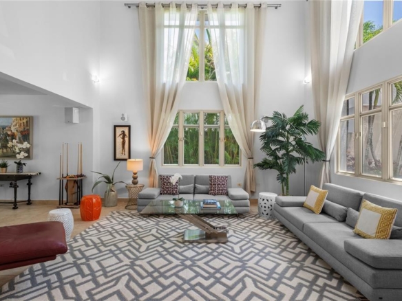 Inside, an impressive double-height living room fills with natural light, while the beautifully renovated kitchen and bathrooms bring modern elegance to the home.