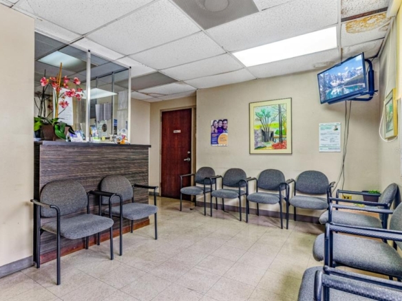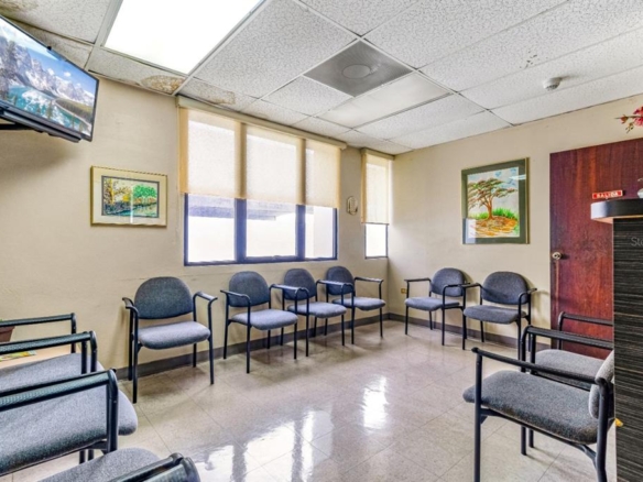 This 1,044 sq. ft. medical office, located in Bayamón, Puerto Rico, is a well-designed medical facility optimized for patient care and comfort. The space is divided into multiple functional areas, including examination rooms, waiting areas, and specialized treatment spaces. Each room is equipped with dental chairs, overhead lighting, and X-ray machines. The waiting areas feature comfortable seating arrangements, with Large windows in some rooms that allow natural light to filter in, brightening the space. The office maintains a clean, professional appearance with tiled floors and drop ceilings with integrated lighting. Storage solutions are integrated throughout the office to keep supplies organized and easily accessible. The office's layout is designed for efficient patient flow, with clearly marked rooms and ample space for staff to move between areas. Despite its compact size, the 1,044 sq. ft. space is well-utilized, providing a comprehensive range of dental services in a comfortable, professional environment.
