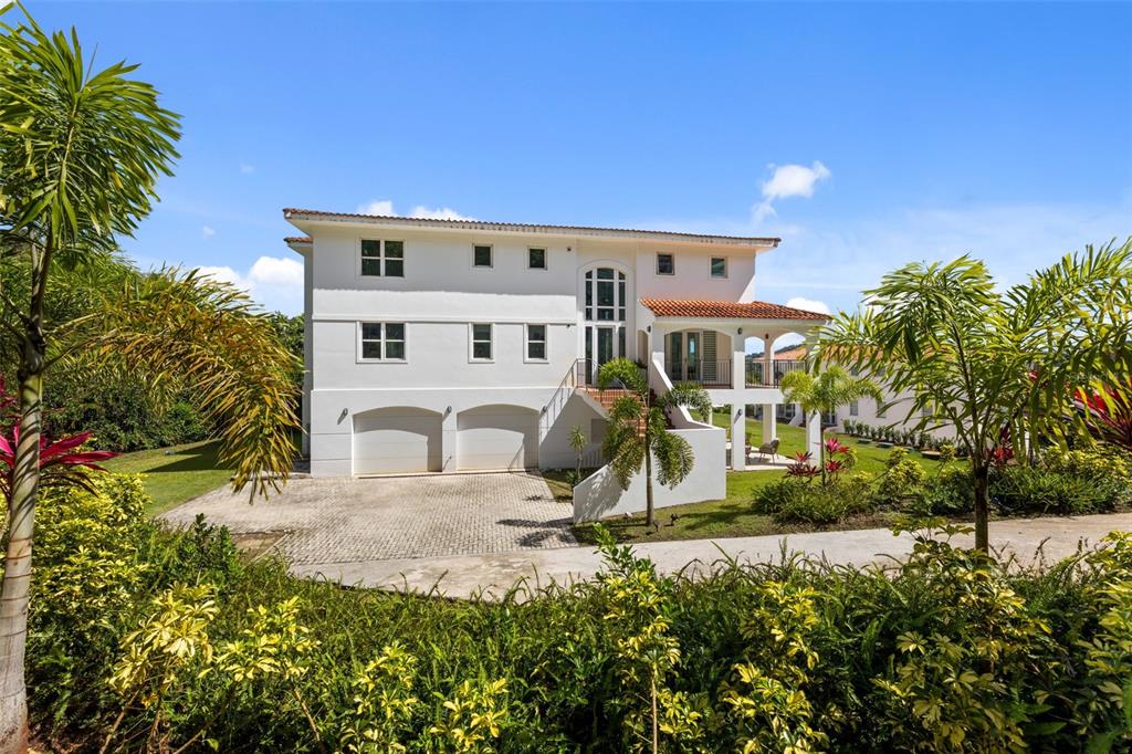 Expansive two-story residence with stunning lake views and lush tropical surroundings