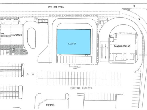 Pad site available in Plaza Dorada Shopping Center in Dorado next to Starbucks and Banco Popular available for lease or build to suit up to 5,000sf. The lease price is $7,000 month, net for a ground lease and $12,500 month, net for a build to suit building up to 5,000sf. The net CAM charge is $10/sf/yr. The property is suitable for restaurants, offices, and retail uses.