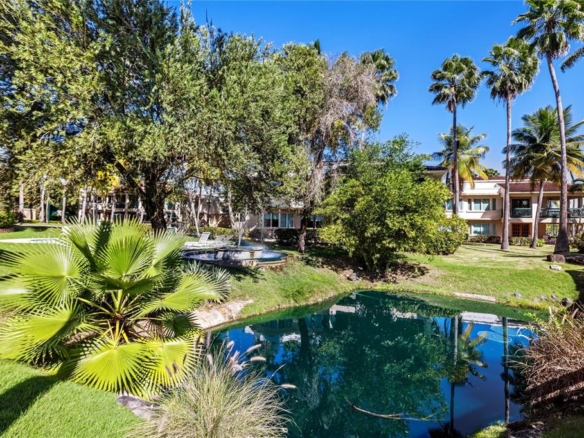 As you step inside, you are greeted by an inviting open layout with abundant natural light streaming through large windows. The interior features elegant terracotta flooring, high ceilings, and tasteful finishes throughout. The living and dining areas are perfect for entertaining, while the kitchen comes equipped with all appliances, ample counter space, and a cozy breakfast nook overlooking lush gardens. Each bedroom is a private retreat, complete with ample closet space and serene views of the beautifully landscaped grounds. The master suite is a true sanctuary with its own en-suite bathroom. Step outside to enjoy the expansive terrace, ideal for al fresco dining and lounging. The villa’s lush surroundings include meticulously maintained gardens, a resort-style swimming pool, and a charming lake view that creates a peaceful ambiance.