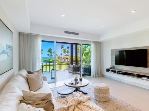 Hidden gem on your new tropical haven beautifully appointed ocean view condominium just-steps away from the beach and the Beach Club, located in the most exclusive residential community in Puerto Rico. The spacious & modern residential unit consists of two bedrooms, and two full bathrooms with extra expansive terrace overlooking the water. Move-in-ready fully furnished and equipped.
