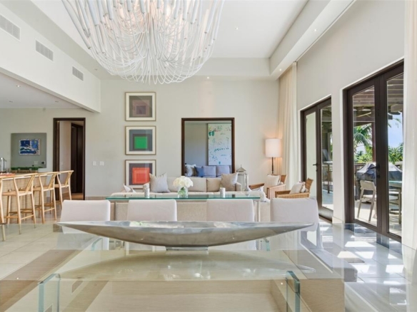 Set above the landscape, the residence opens to sweeping views of the Robert Trent Jones Jr golf course and surrounding greenery, with high ceilings and expansive windows that bring in natural light and a sense of calm throughout. The living and dining areas are spacious yet understated, designed for effortless indoor-outdoor living.
