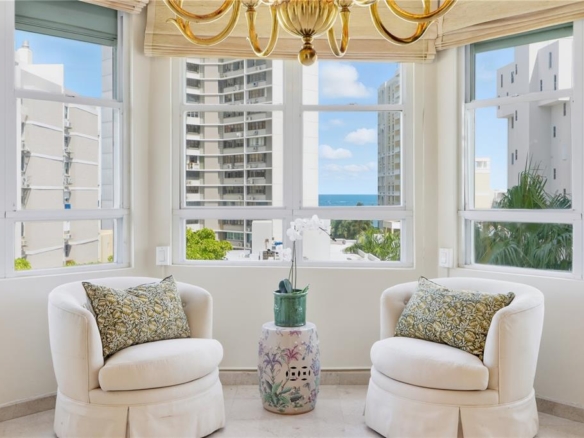 Discover one of the most elegant residences in the exclusive Marymar condominium—where the sophistication of Condado meets the laid-back charm of Ocean Park. Located on the 6th floor of this full-service, boutique building, this exquisite apartment offers the rare blend of elegance, space, and ocean views in one of San Juan’s most walkable neighborhoods.