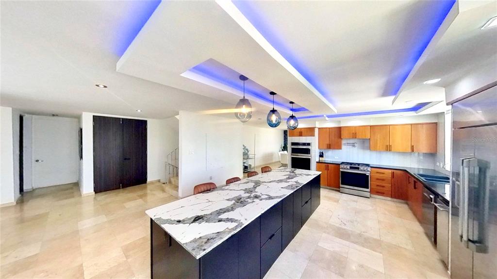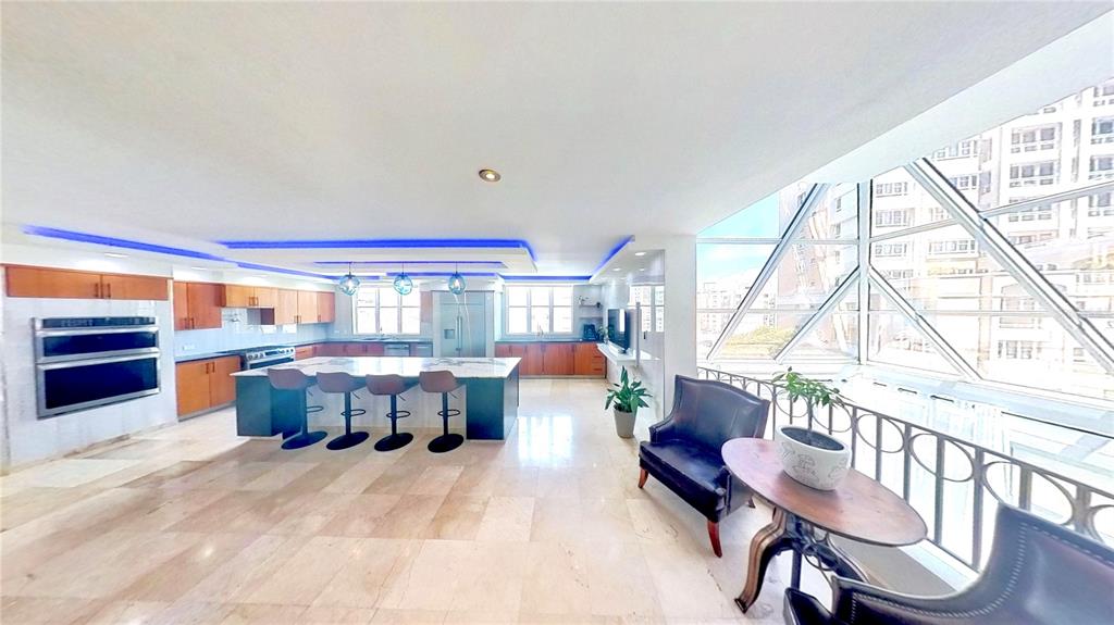 Step into elevated Caribbean living at this fully renovated tri-level penthouse located just one block from the beach in the heart of San Juan’s exclusive Condado neighborhood. Spread across the 6th, 7th, and 8th floors of a boutique condominium, this 4,982 sq ft masterpiece is a rare blend of coastal sophistication and modern convenience — with breathtaking ocean and city views, a smart home ecosystem, and private outdoor entertaining spaces.