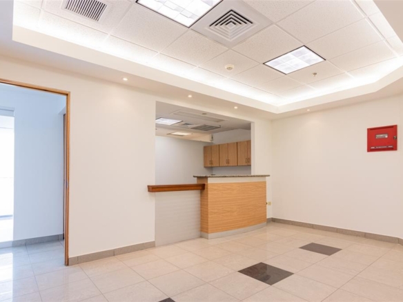 The space features a highly efficient layout suitable for immediate professional use: reception, waiting area, five (5) private offices, a full in-unit restroom, and a break room/kitchenette (easily convertible into a 6th office). The unit is powered by two (2) central A/C units.