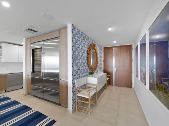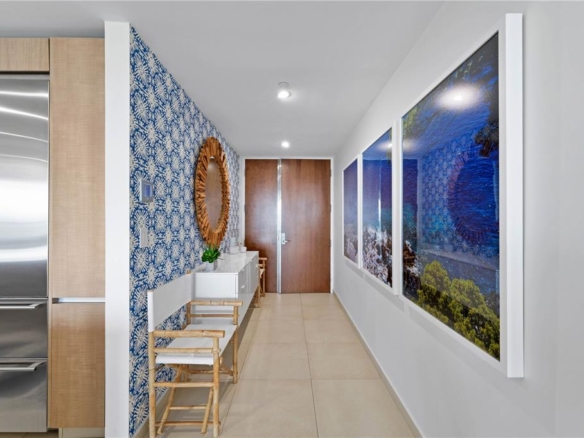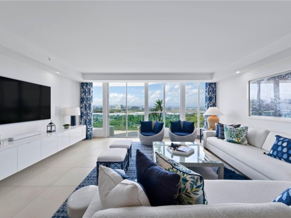 With an impeccable coastal position in the city’s Puerta de Tierra WeCo district, this eighth floor residence at Bahia Plaza is offered as a fully turn-key two bed, two and a half bath with just over 1,900 sq.ft. Featuring a spacious primary suite with a custom walk-in closet, a second en suite bedroom, and an open living and dining area that leads to a covered balcony with views to the San Juan Bay and the Convention District. Designed by Susan Keenan, the interiors reflect a clean, modern sensibility with layered textures and curated warmth. Furniture and fixtures include pieces from Serena & Lily, Stark, Bungalow 5, and Palecek, paired with a custom ivory paint palette. The kitchen has been extensively upgraded with Sub-Zero refrigeration systems, Wolf induction cooktop, Cove dishwasher, and a dedicated laundry room with Miele washer and dryer. Interiors include custom California Closets throughout, tankless water heating, upgraded Carrier HVAC, and electric window shades. A Samsung Frame TV, in-ceiling Sonos sound, and integrated lighting elevate the living spaces with ease and intention. The residence is offered fully furnished with the complete design package and select artwork. Two deeded parking spaces are included, with building amenities such as 24-hour security, full back-up generator and cistern, resident’s lounge, pool, and gym. Bahia Plaza is a contemporary, design-focused Condominium with immediate access to dining, culture, and the waterfront.
