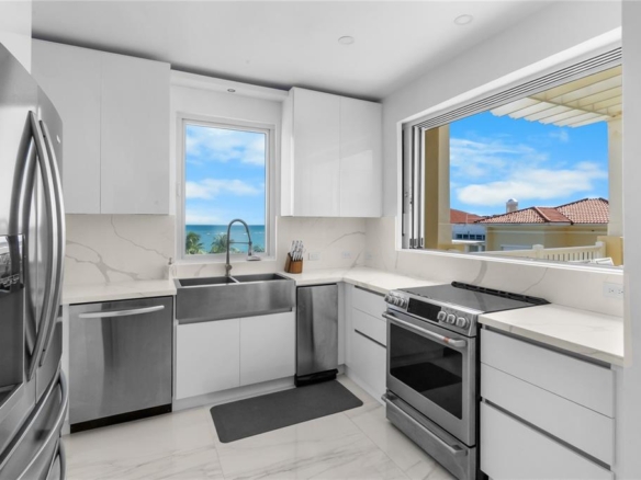 High ceilings and expansive living areas are filled with natural light, creating a bright and welcoming atmosphere throughout. As a corner unit, the residence enjoys enhanced privacy, cross-ventilation, and sweeping ocean views that set the tone for relaxed beachfront living. The open layout seamlessly connects indoor spaces, while direct beach access places the shoreline just steps from your door. Featuring approximately 2,650sqft of living space and two assigned underground parkings.