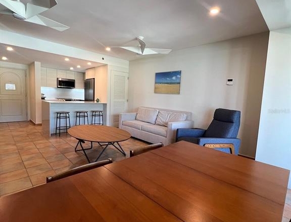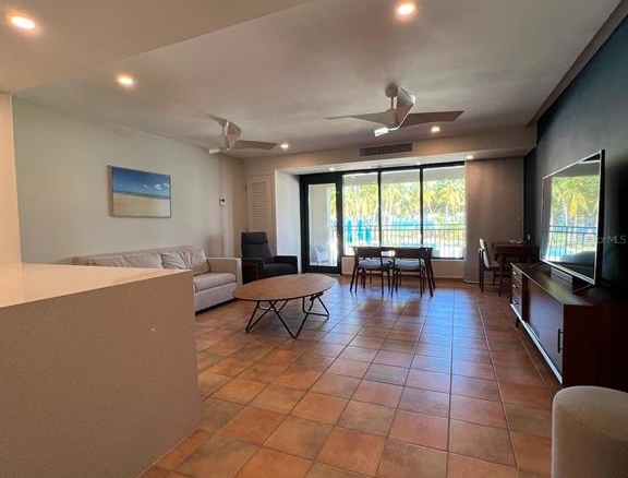 Cond. Ocean Villa I, Río Grande. Live where others vacation! This stunning remodeled ocean-view apartment, conveniently located on the first floor, offers 1,019 sq. ft. of luxury living with 1 spacious bedroom, 2 full bathrooms, and comes fully furnished and equipped with appliances, 1 assigned parking space plus additional visitor parking. Ocean Villas Condominium provides first-class amenities such as a full power generator, water cistern, infinity pool, lap/quiet pool, outdoor jacuzzi, and an exclusive pool for owners, along with direct beach access. Short-term rentals and AIRBNB are permitted. Monthly RMCA fee is $611.16 with an additional annual community fee of $947.67. Don’t miss this opportunity to own a piece of paradise!