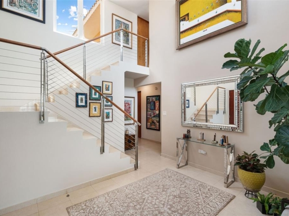 Experience the comfort of a private home with the convenience of condominium living. The main floor features three spacious bedrooms, two full bathrooms, powder room, a modern eat-in kitchen, family area, and a large laundry room with storage. Expansive windows frame with picturesque views of lush trees and charming red-tile rooftops, filling the space with light and serenity.