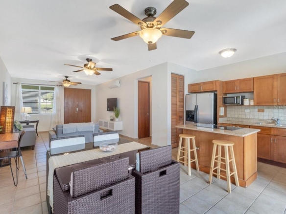 Beautiful garden-level unit located in Harbor Lakes, within the Palmas del Mar resort. This fully furnished property features 3 bedrooms, 2 full bathrooms, and a half bath, with a total of 1,637 sq. ft. of living space and no stairs for easy access. It includes two assigned parking spaces and an additional spot for a golf cart.The gated community offers five swimming pools and 24/7 security, providing comfort, convenience, and resort-style living. Short-term rentals are allowed.