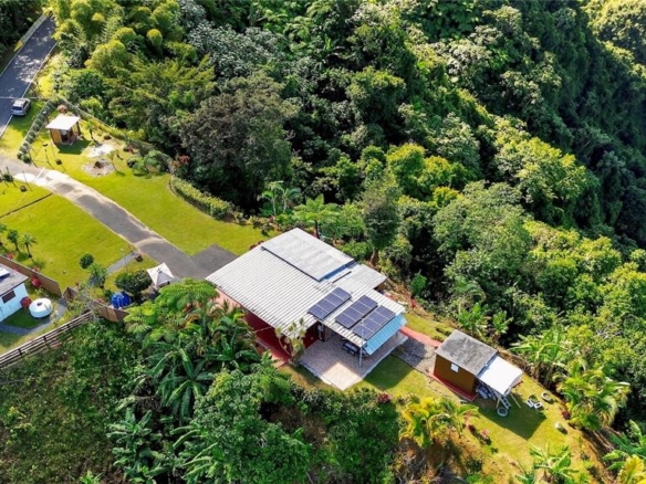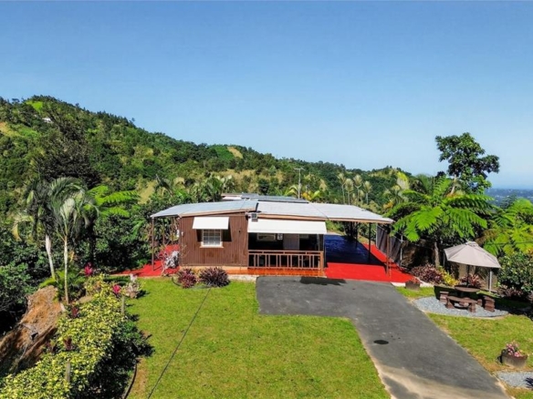 Perched on a mountaintop 2,200 feet above sea level, this turnkey lodge offers true off-grid living without giving up connectivity. Solar-powered and equipped with fiber-optic internet, it’s the ideal retreat for Airbnb, work, weekends, or full-time simplicity. Take in sweeping panoramic vistas and multiple epic viewpoints, with the calming ambiance of a nearby river and waterfall. Surrounded by lush greenery and open skies, the outdoor terrace is made for dining, lounging, and entertaining. Inside, you’ll find two bedrooms, a fully equipped kitchen, a comfortable living room, and a full bathroom—sold fully furnished and ready to enjoy from day one. Despite the peaceful setting, you’re just four minutes from a gas station, supermarket, and hardware store.