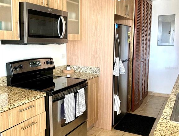 Furnished apartment second floor with Ocean View located at Peñamar, in Fajardo. 3 bedrooms and 2 bathrooms, with fully equipped kitchen and granite counter top. Peñamar is a residential “ Resort” style complex located on the Eastern side of the Island with ocean views. Close community with 24 hours security, 3 beautiful pools, tennis courts, gym, playground and walking trails. It also has elevator, generators for inside the apartment and water cistern. Peña Mar it’s located in the Fajardo municipality minutes from Seven Seas Beach and next to Villa Marina, Puerto Chico Marina and Sunday Marina. Minimum lease 1 year. REQUIREMENTS: CREDIT REPORT AND INCOME VERIFICATION