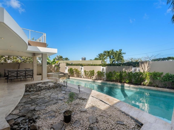 Positioned on an elevated and commanding lot, the residence sits above neighboring properties, providing exceptional privacy in the terrace and pool areas. Solid concrete walls and open views toward Guaynabo further enhance the sense of seclusion and exclusivity.